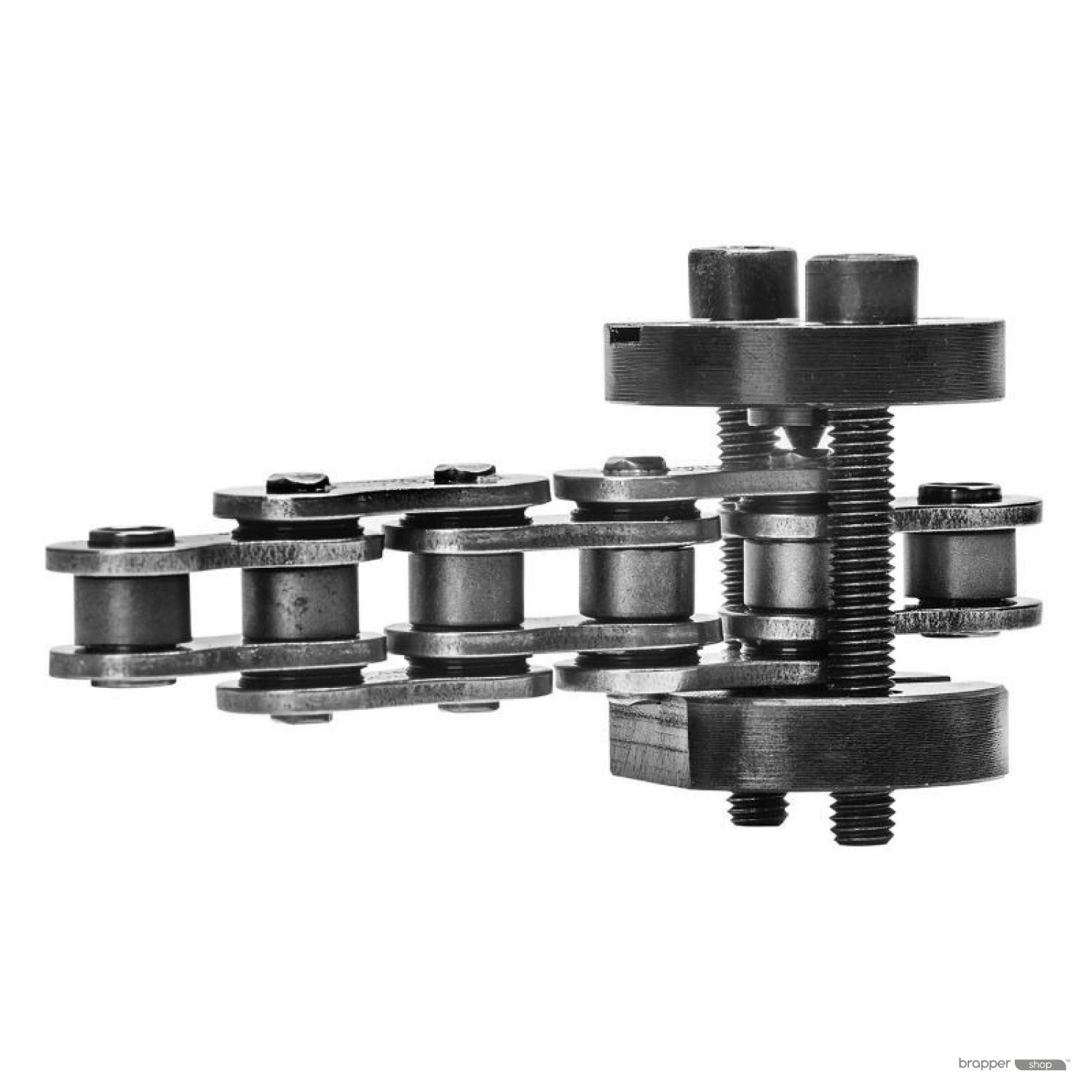 This small but very ingenious device allows you to rivet each 5/8 pitch connecting link with a hollow pinhead.