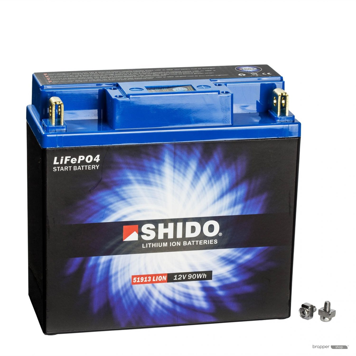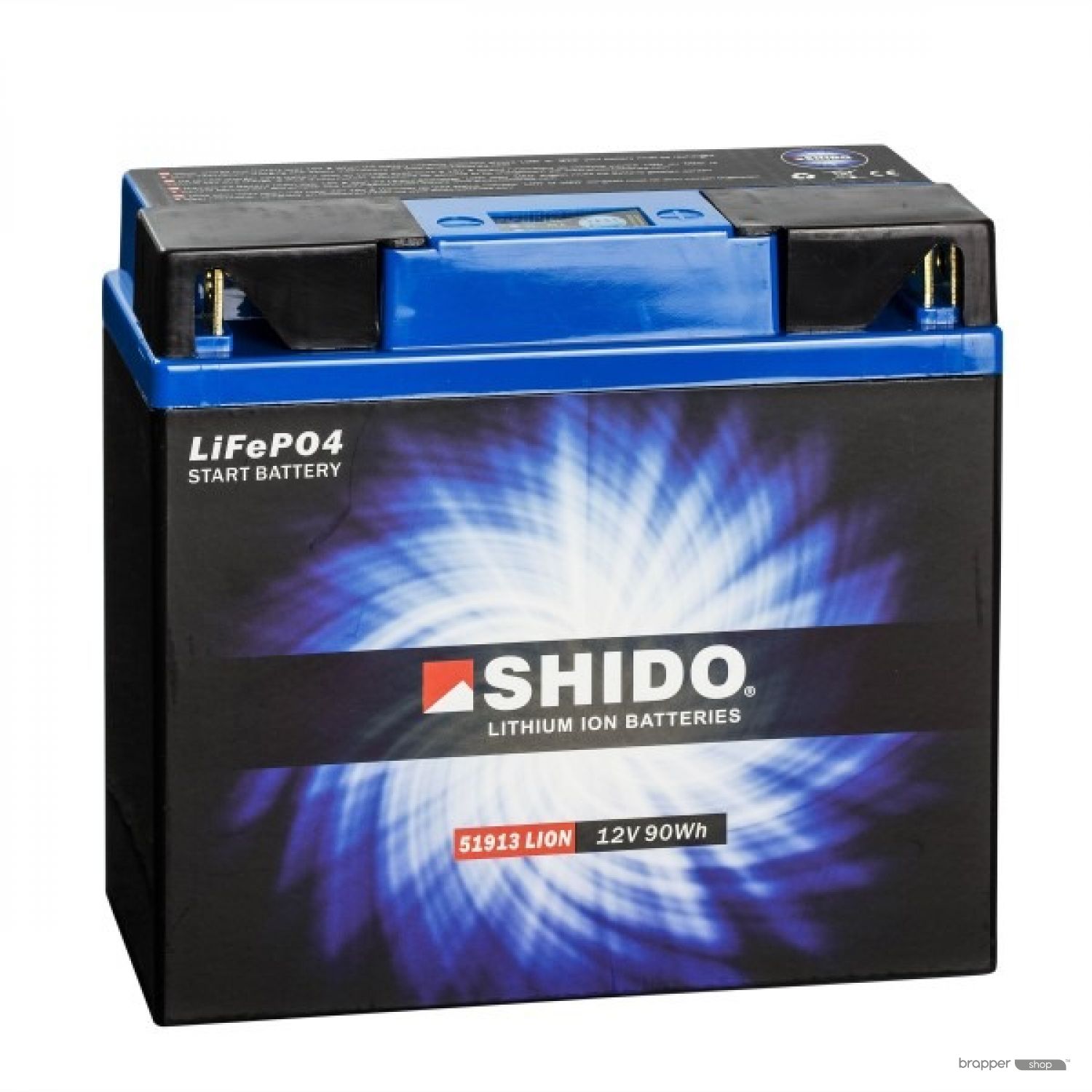 Shido Lithium Batteries have 4 cells LiFePO4 (Lithium Iron Phosphate) of 3.2 volts connected in series in order to reach an OCV of 12.8 volts. A perfect voltage to use as a starter battery for motorcycles. The electronic Battery Management System or BMS spread the charge and discharge regularly over the four cells. Thanks to its small internal resistance a Shido Lithium battery can generate a very high starting current with little Ah. This starting power delivers a powerful and quick start of the vehicle.