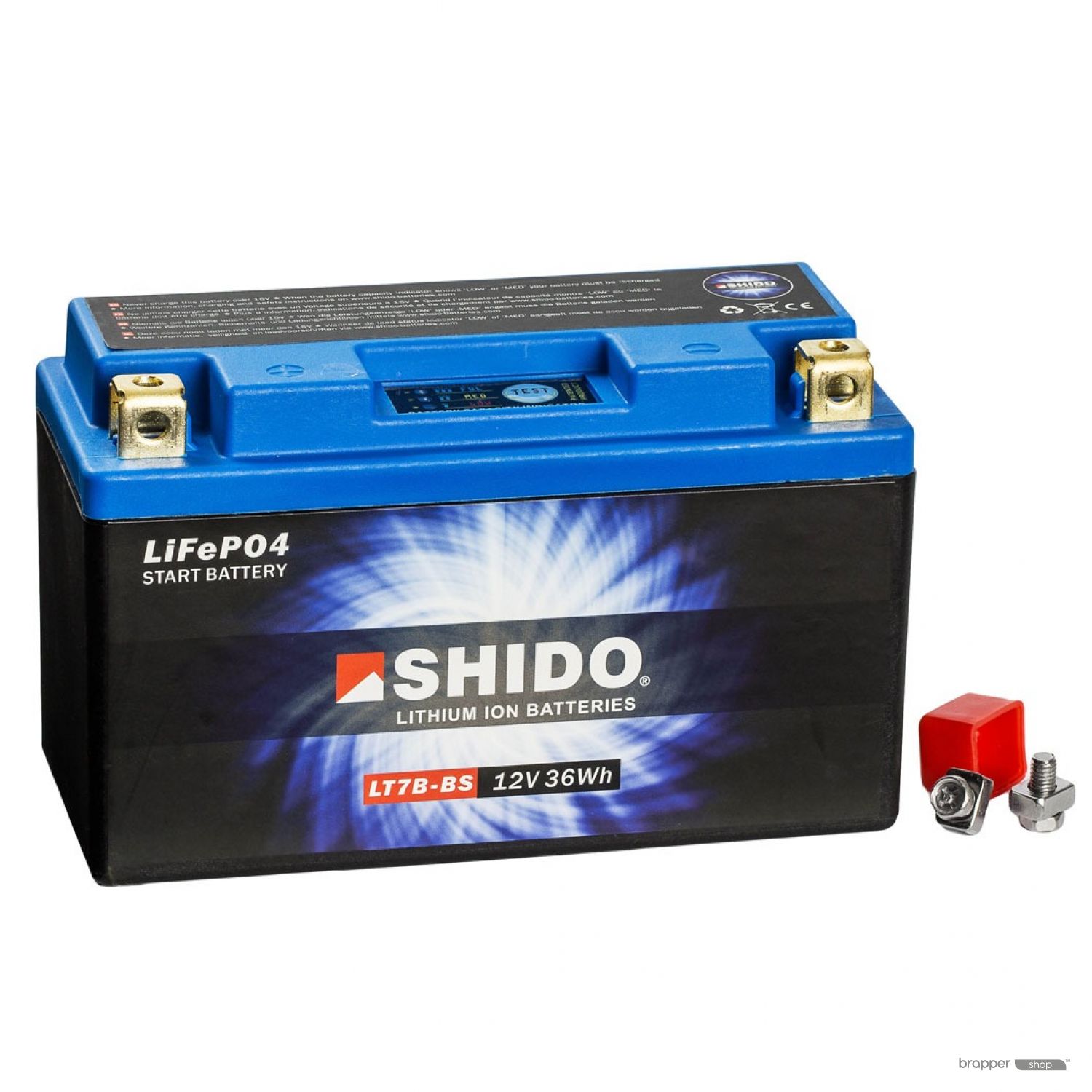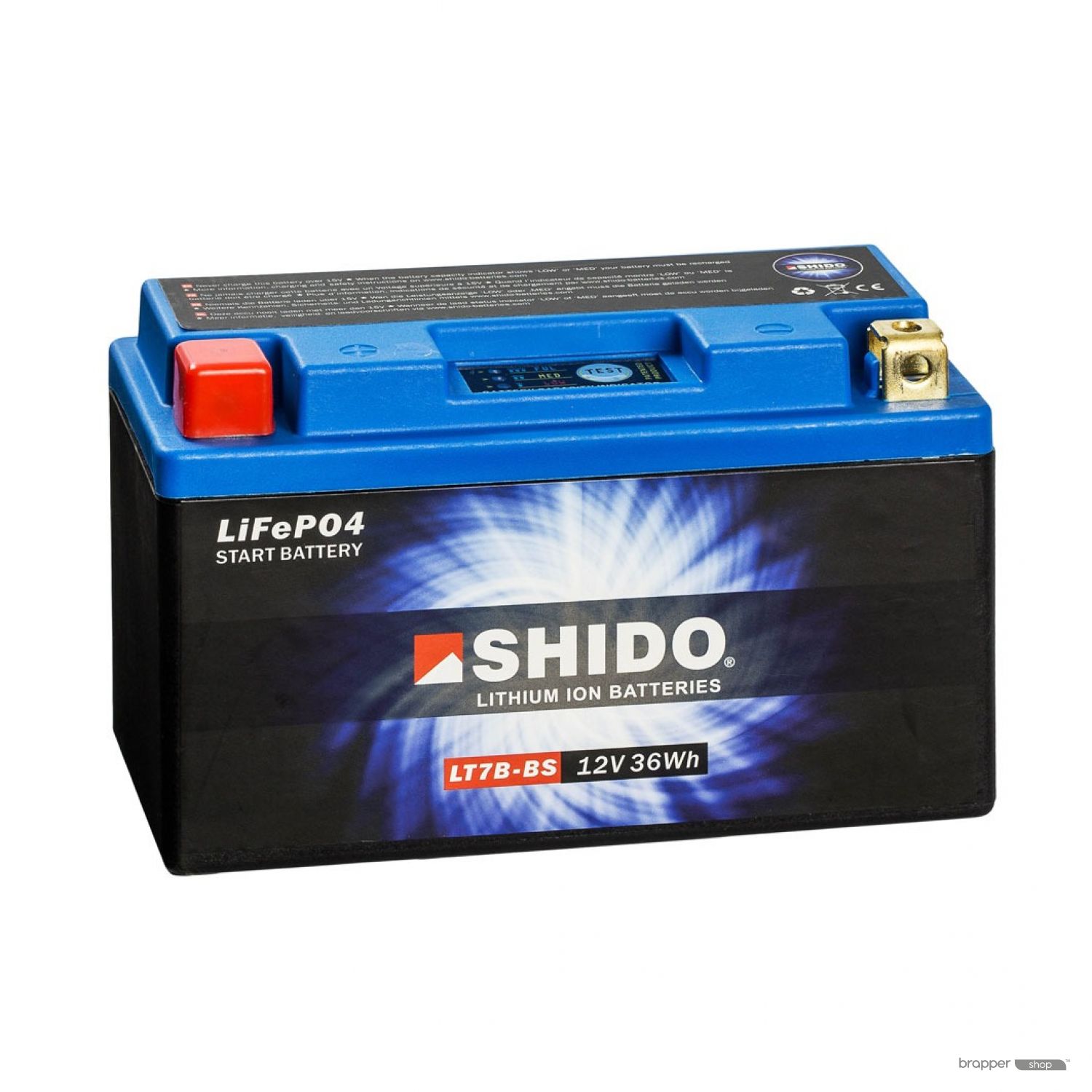 Shido Lithium Batteries have 4 cells LiFePO4 (Lithium Iron Phosphate) of 3.2 volts connected in series in order to reach an OCV of 12.8 volts. A perfect voltage to use as a starter battery for motorcycles. The electronic Battery Management System or BMS spread the charge and discharge regularly over the four cells. Thanks to its small internal resistance a Shido Lithium battery can generate a very high starting current with little Ah. This starting power delivers a powerful and quick start to the vehicle.