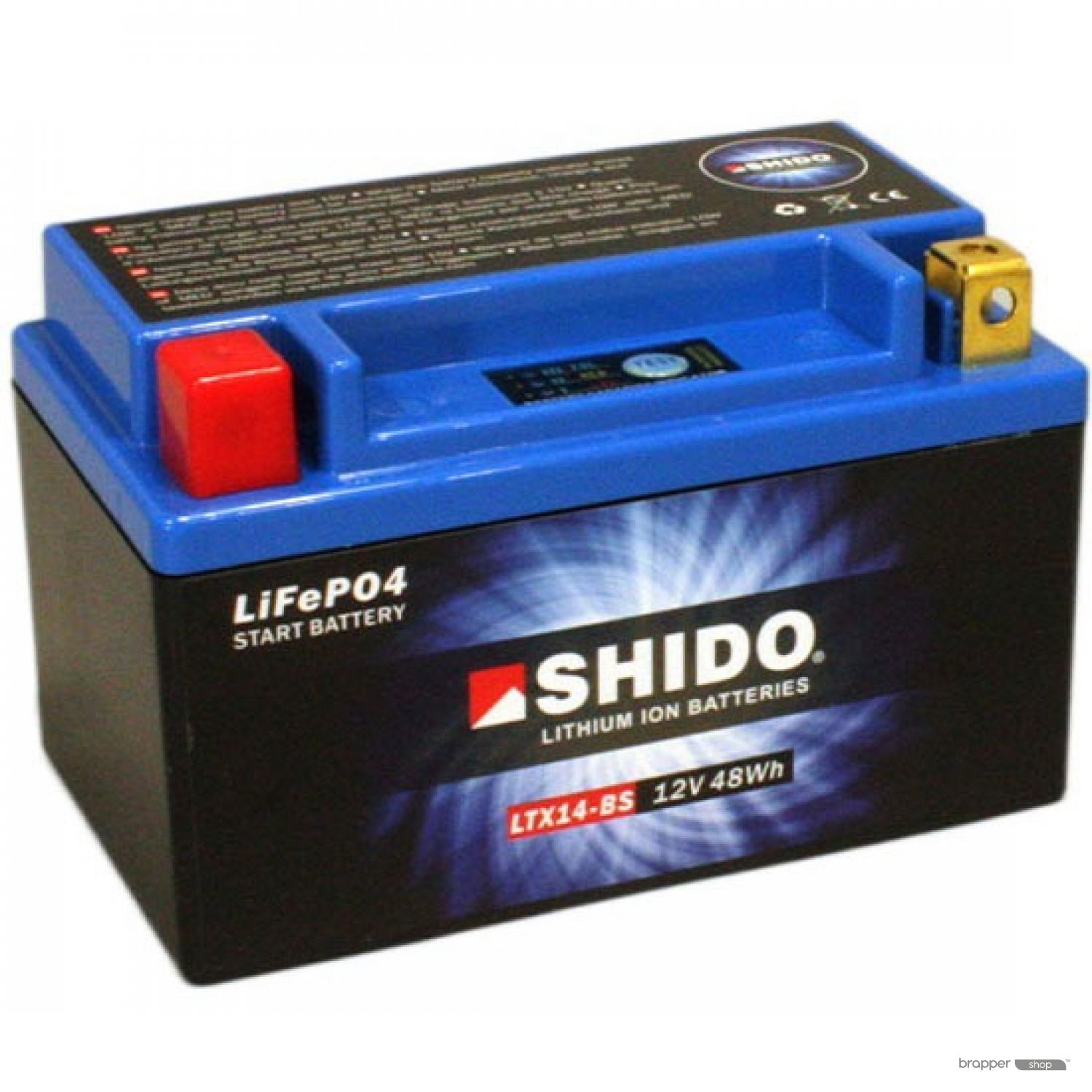 Shido Lithium Batteries have 4 cells LiFePO4 (Lithium Iron Phosphate) of 3.2 volts connected in series in order to reach an OCV of 12.8 volts. A perfect voltage to use as a starter battery for motorcycles. The electronic Battery Management System or BMS spread the charge and discharge regularly over the four cells. Thanks to its small internal resistance a Shido Lithium battery can generate a very high starting current with little Ah. This starting power delivers a powerful and quick start to the vehicle.