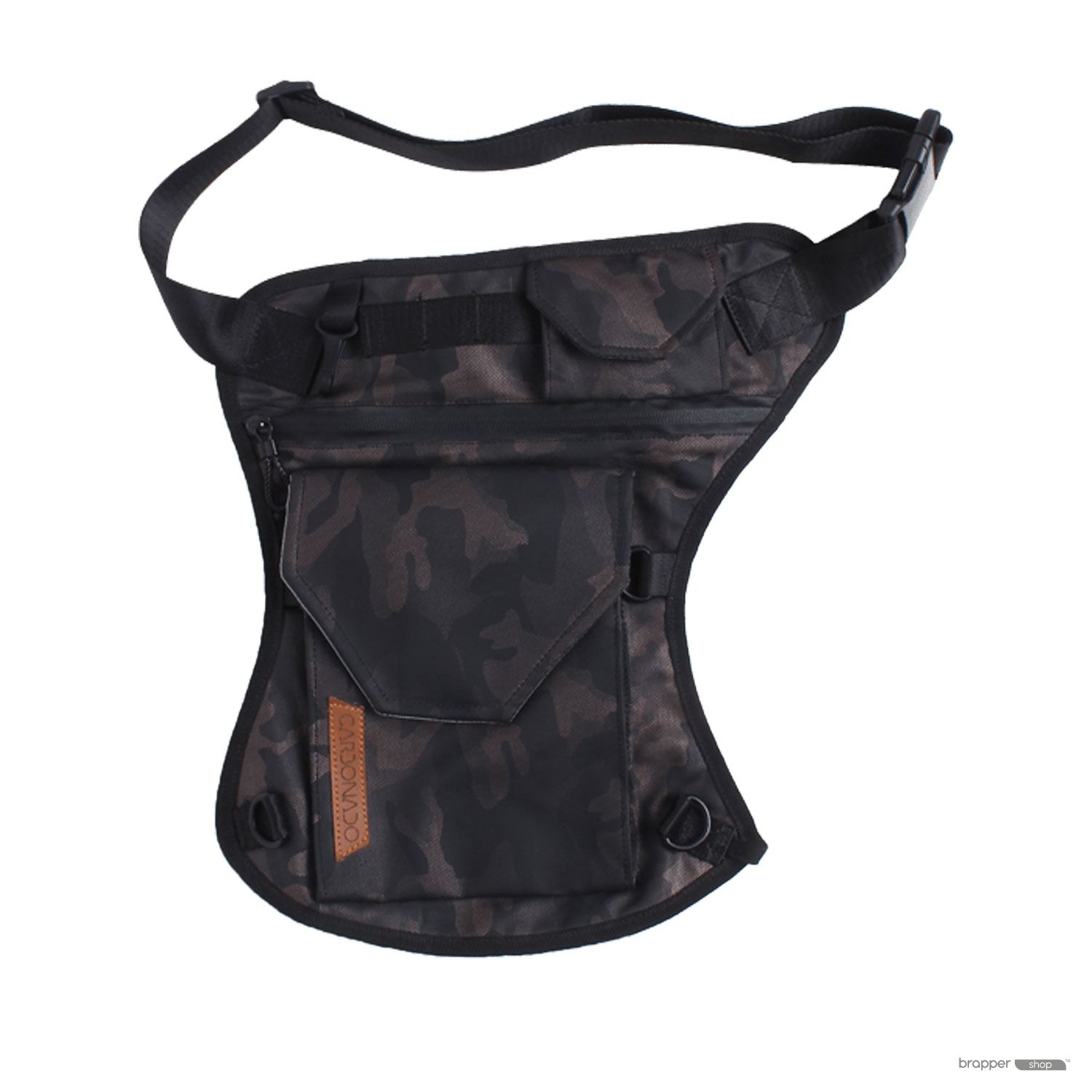 - Just take the larger waist strap and run it across your preferred shoulder and buckle it in. The thigh strap can be removed. We promise that you’ll look just as cool as you would with it around your waist!
