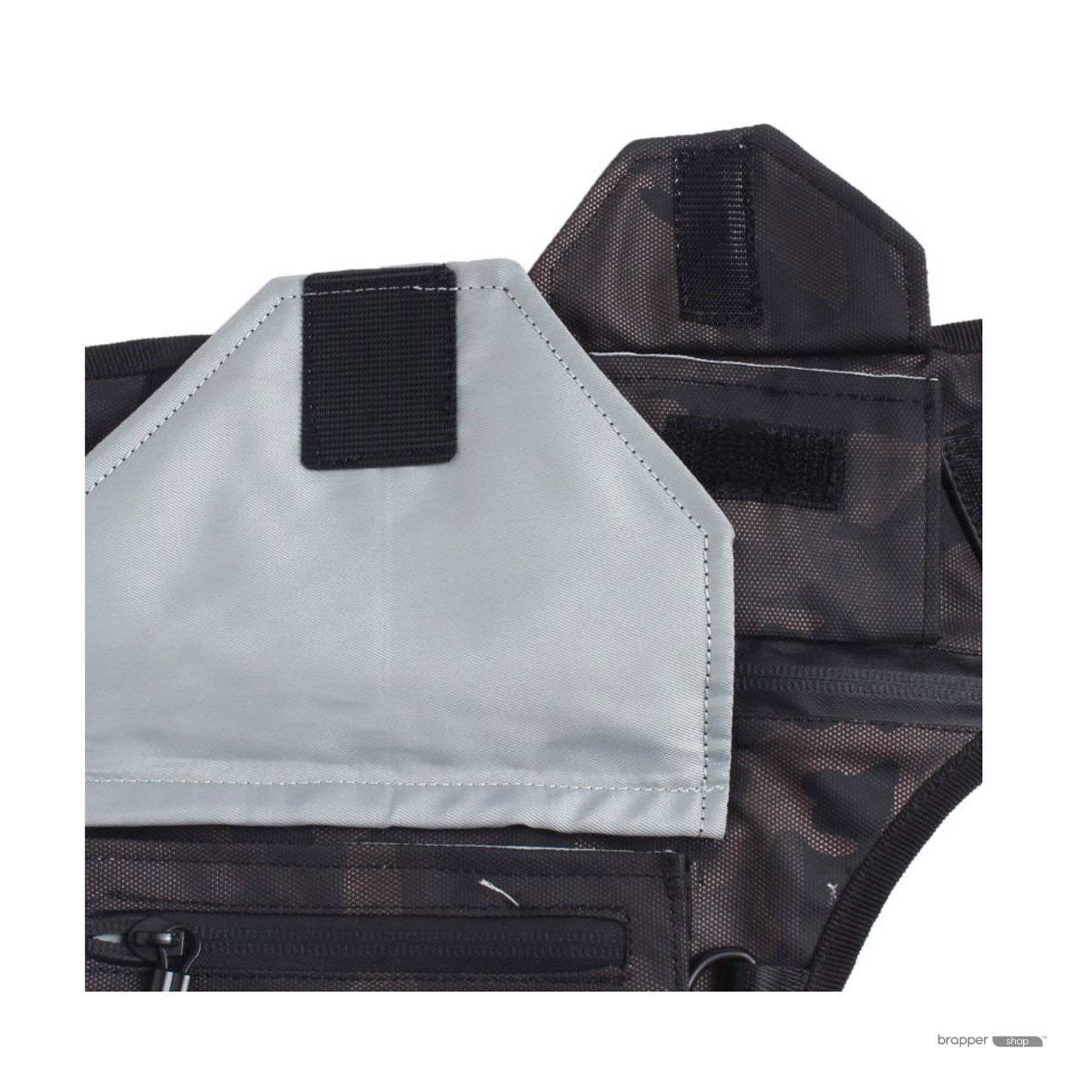 - The open-front velcro pouch is meant for your bulky items that you may need access to in a hurry, like perhaps your wallet or a pack of business cards.