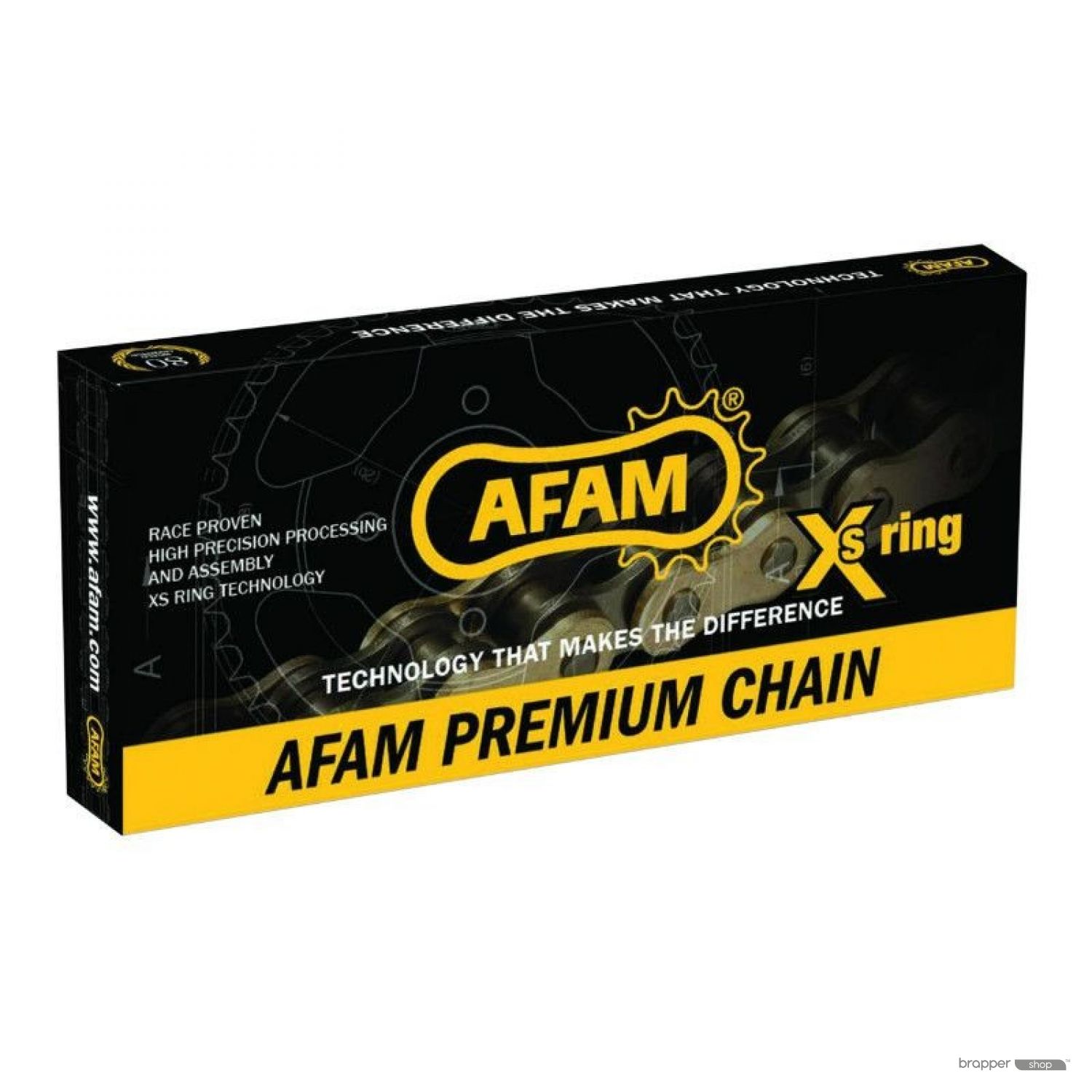 The AFAM Xs-Ring Motorcycle Chain is designed to improve sealing and internal lubrication of the chain, and thus dramatically improve the life span of your chain. Its particular shape gives it great flexibility, reduces friction, and increases the performance of your chain.