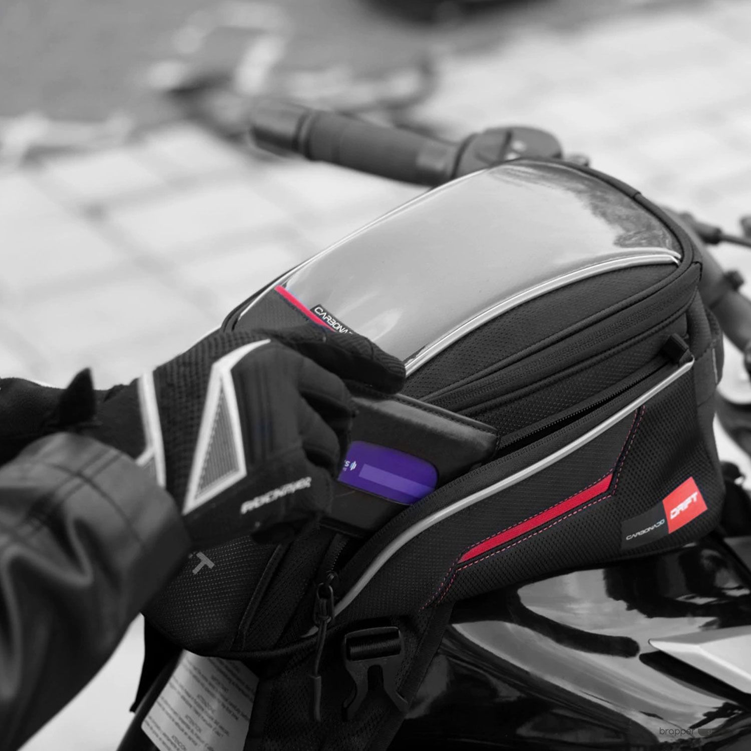 The drift tank bags by Carbonado are the closest ally of any keen rider. They are spacious, sophisticated, extremely easy to access and compatible with almost every motorcycle model on the market. Available in different models and with different types of attachments, they adapt perfectly to the rider's individual needs, with straps and magnetic closures. Drift tank bags are designed to make your riding experience as relaxing and comfortable as possible.