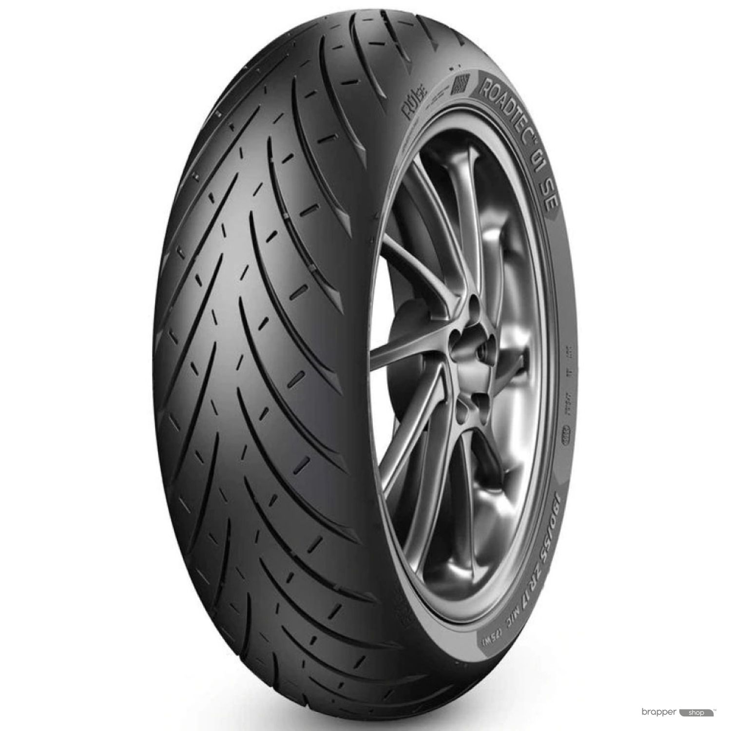 The "SE", or "Supersport" version, of the Metzeler Road Tec 01 Tire takes the sport-touring prowess of the standard Road Tec 01 and increases the grip offered in the dry. The SE tread pattern and composition maintain the tire's supersport-touring capabilities and wet weather performance. The SE version features a higher land/sea ratio along the shoulder block for enhanced traction at extreme lean angles. Sidewall construction is standard-duty across all options to communicate better with the road and offer more compliance under light- and medium-weight motorcycles.