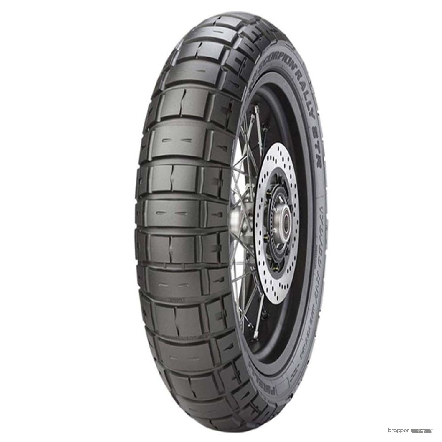 The Scorpion Rally STR Tires are yet another innovation in the ADV tire segment, offering riders excellent grip in all conditions and a long-lasting compound that is ready to go the distance. The Rally STR features a road-derived profile and a silirich compound that works well on the pavement, even in wet or cold conditions. This profile and compound, combined with a unique knob design, results in a large & consistent contact patch that delivers serious canyon carving performance and works well with sophisticated rider aids, like cornering ABS and traction control. When your adventure takes you off the tarmac, the aggressive knobby design, inspired by the venerable Scorpion Rally Tires, begins to shine - making quick work of gravel, sand or dirt.