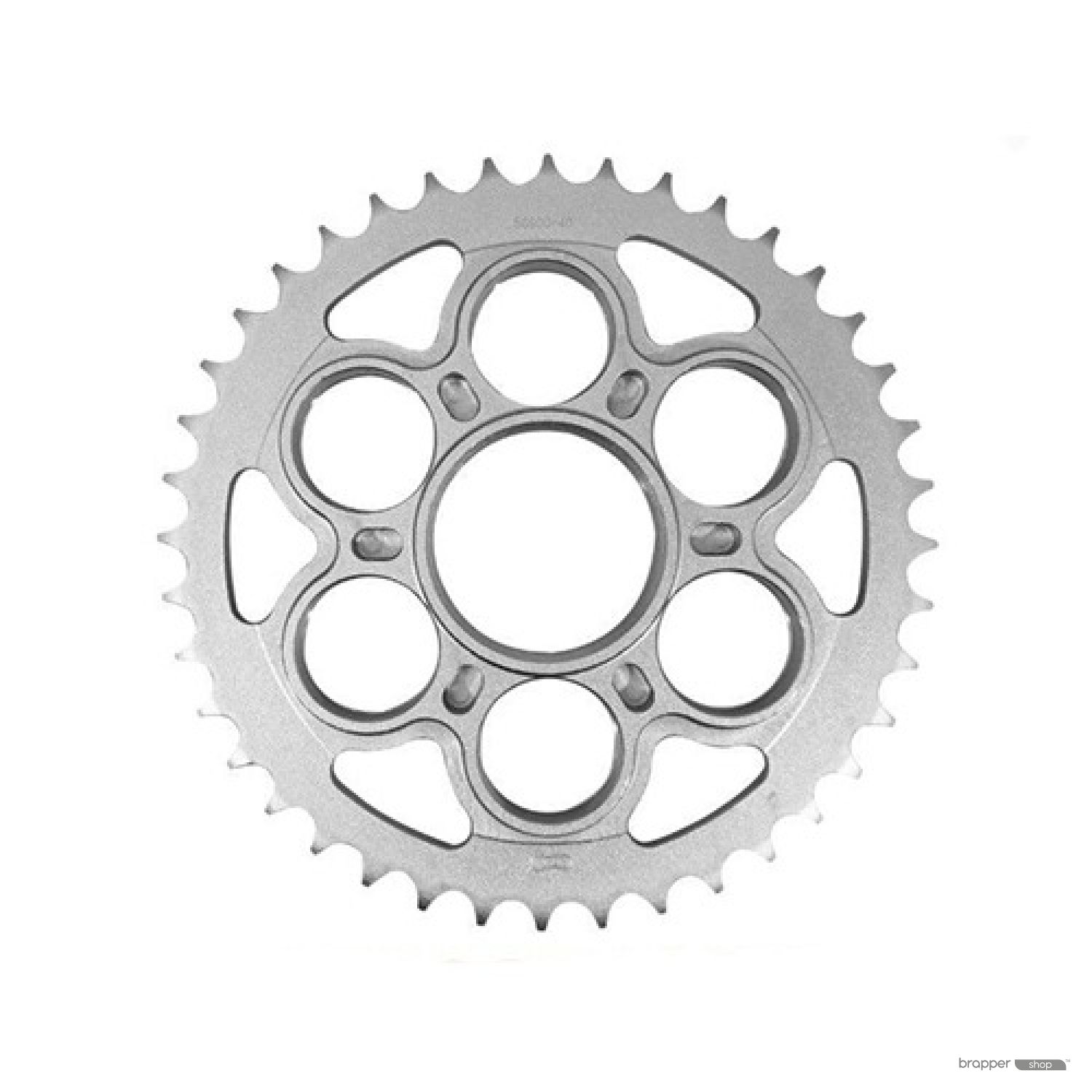 Every sprocket is heat-treated through an induction hardening then tempered to produce exactly the correct hardness for durability and efficient power delivery. To correct any distortion that may have occurred during these stages, the sprockets are put through a special flattening machine. For corrosion resistance, the steel sprockets are bright zinc plated.