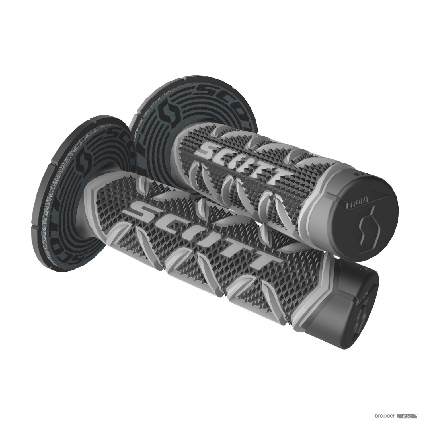 The go-to motocross grip for many a professional racer, the SCOTT Diamond Grip is the most advanced MX grip in the range thanks to its highly advanced triple density construction. A medium-density outer waffle pattern delivers maximum control and durability, whilst the soft density diamond pattern area reduces vibration, therefore reducing arm pump and fatigue. A firm density end cap offers further durability to this advanced motocross or enduro grip. The included grip donuts increase comfort and greatly reduce the chances of getting thumb blisters.